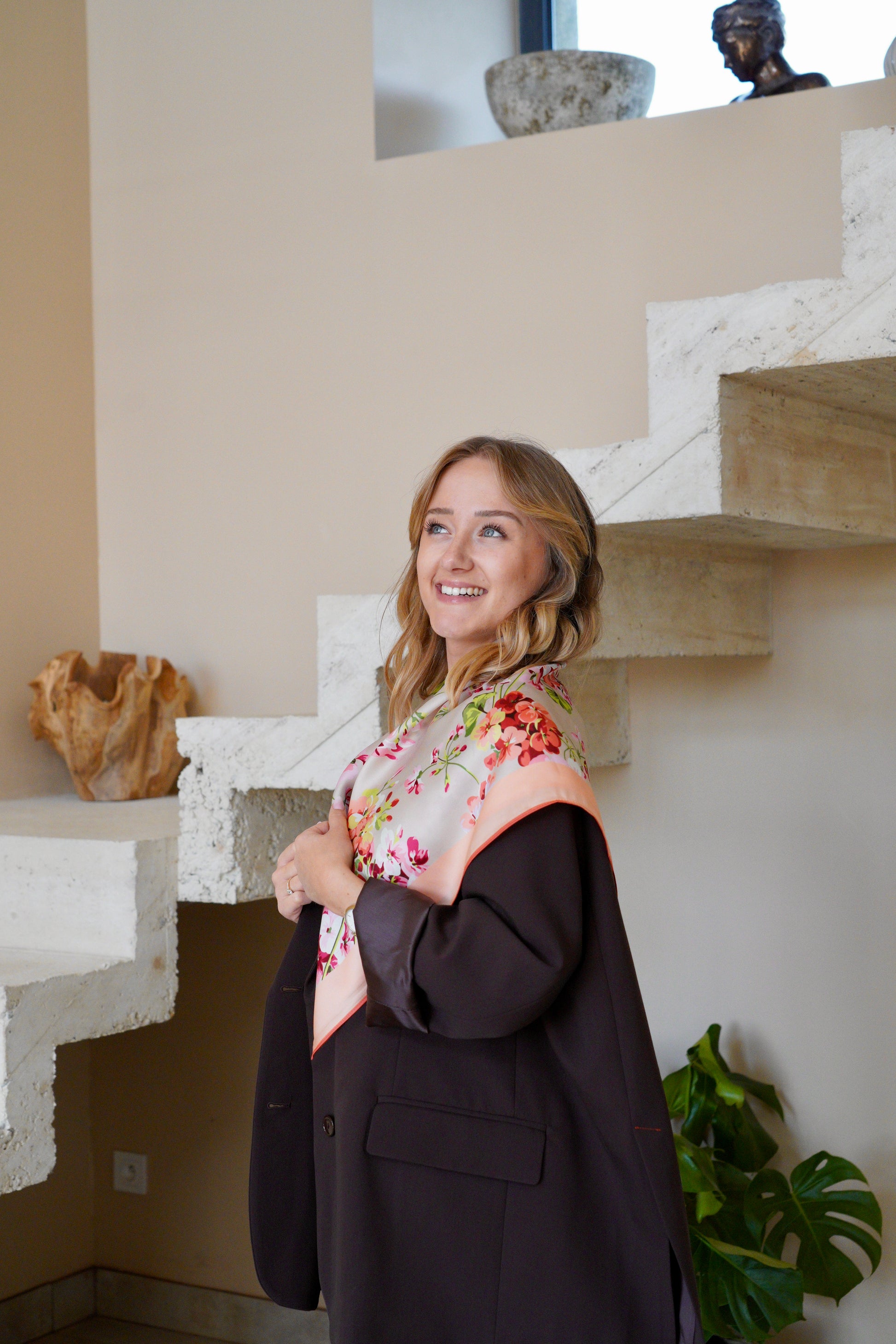 Nos foulards 100% soie subliment chaque tenue avec élégance. Leur format généreux, leurs couleurs vibrantes et leur qualité en font des pièces d’exception, à porter, nouer ou collectionner.